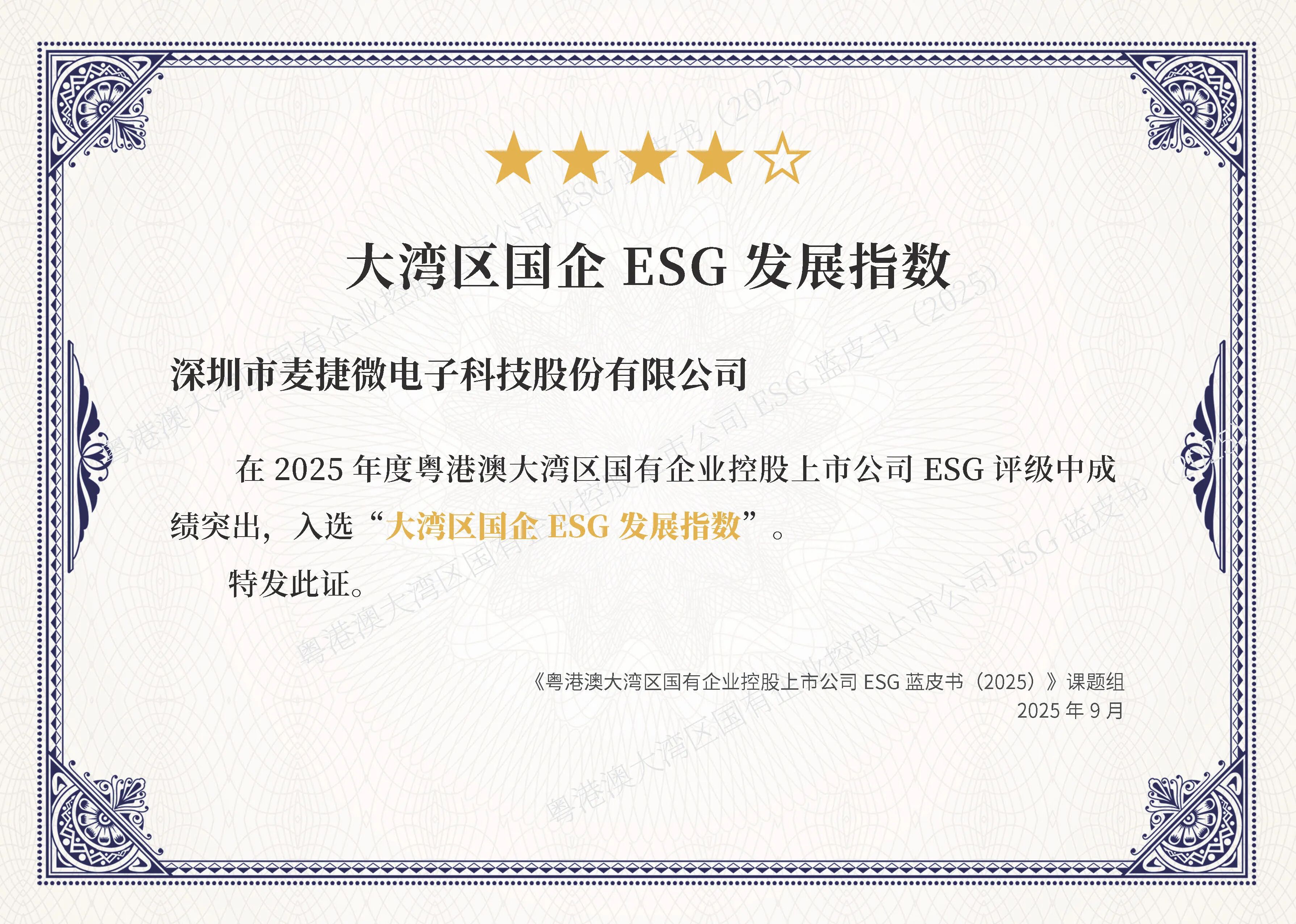 此外,在本次論壇發(fā)布的多項權(quán)威指數(shù)中,特發(fā)集團旗下麥捷科技憑借在ESG領(lǐng)域的優(yōu)秀表現(xiàn),首次入選“大灣區(qū)國企ESG發(fā)展指數(shù)”榜單。本次入選,不僅是對麥捷科技ESG治理、社會價值創(chuàng)造、風(fēng)險管理等工作的高度認可,更是對麥捷科技踐行可持續(xù)發(fā)展理念的充分肯定。